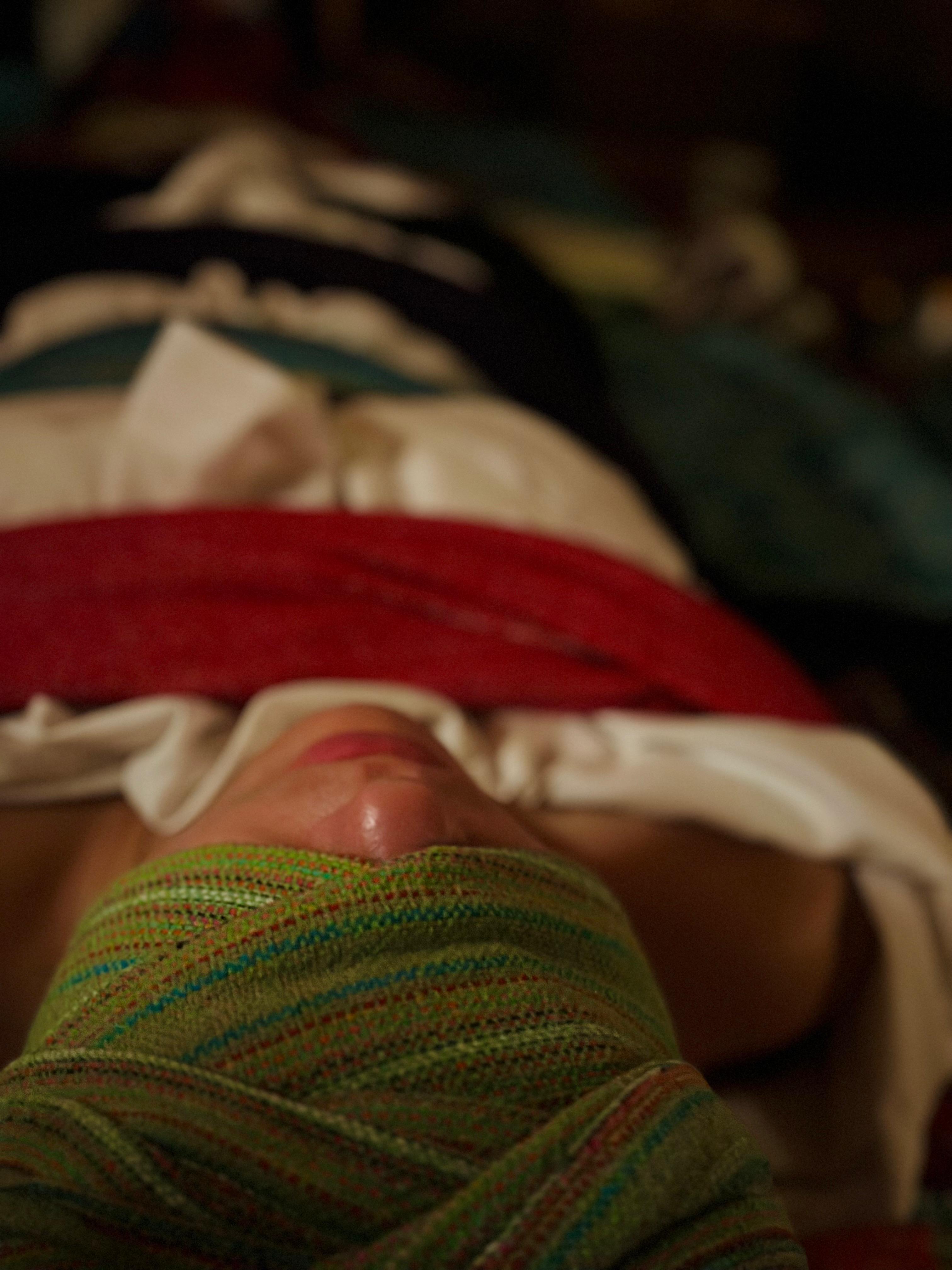 Практика расслабления при помощи мексиканского шарфа ребозо,