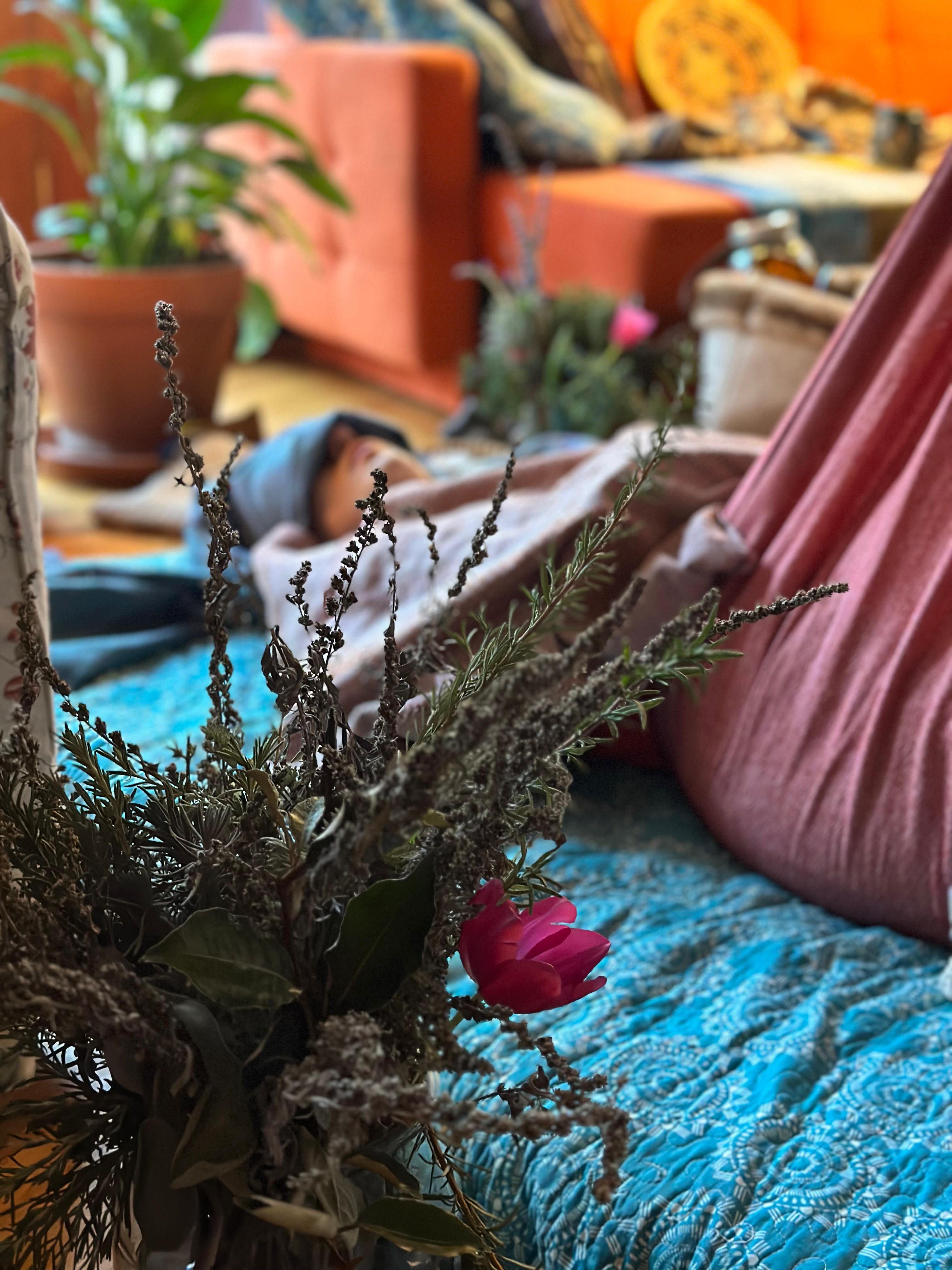 Тая перепрошивает ваши вредоносные программы, помогает зализать раны, проработать травмы, докопаться до таких глубин вашей души, о которых вы даже не подозревали. И самым главным результатом этой работы становится исцеление - приобретение целостности. Если технически, то я прилетела в понедельник днём и мы отправились на горячие источники, где пробыли до конца дня. Там выстраивались близость и доверие. Это необходимые элементы, чтобы сбросить защиты, позволить себе быть уязвимой, открыться и отдаться. Во вторник утром мы пошли в процесс. В саду мы насобирали лекарственные травы, про которые Тая рассказала очень много интересного, как, собственно, и все, что она рассказывает и пишет. Из трав был сделан мешочек, который использовался для приготовления отвара и для работы с телом в бане. А потом - практика расстановок, которую Тая широко использует в своей работе, опять разговоры, другие техники массажа и, собственно, само пеленание, после которого я уснула сном младенца. Все закончилось в районе часа ночи. Честно говоря, я пожалела, что нужно было улетать в среду. Рекомендую брать пакет на два полных дня, а не на один как было у меня.